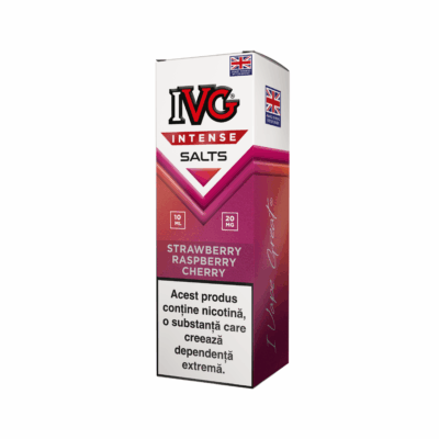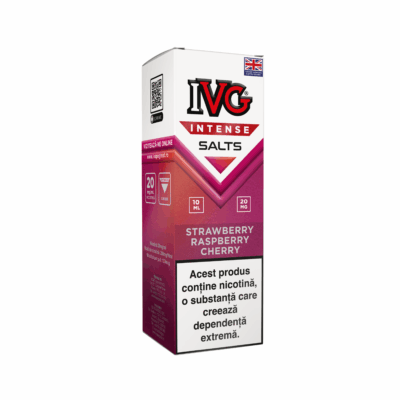 IVG Intense Salts Strawberry Raspberry Cherry – Căpșuni dulci, zmeură acrișoară și cireșe suculente creează o explozie de arome.